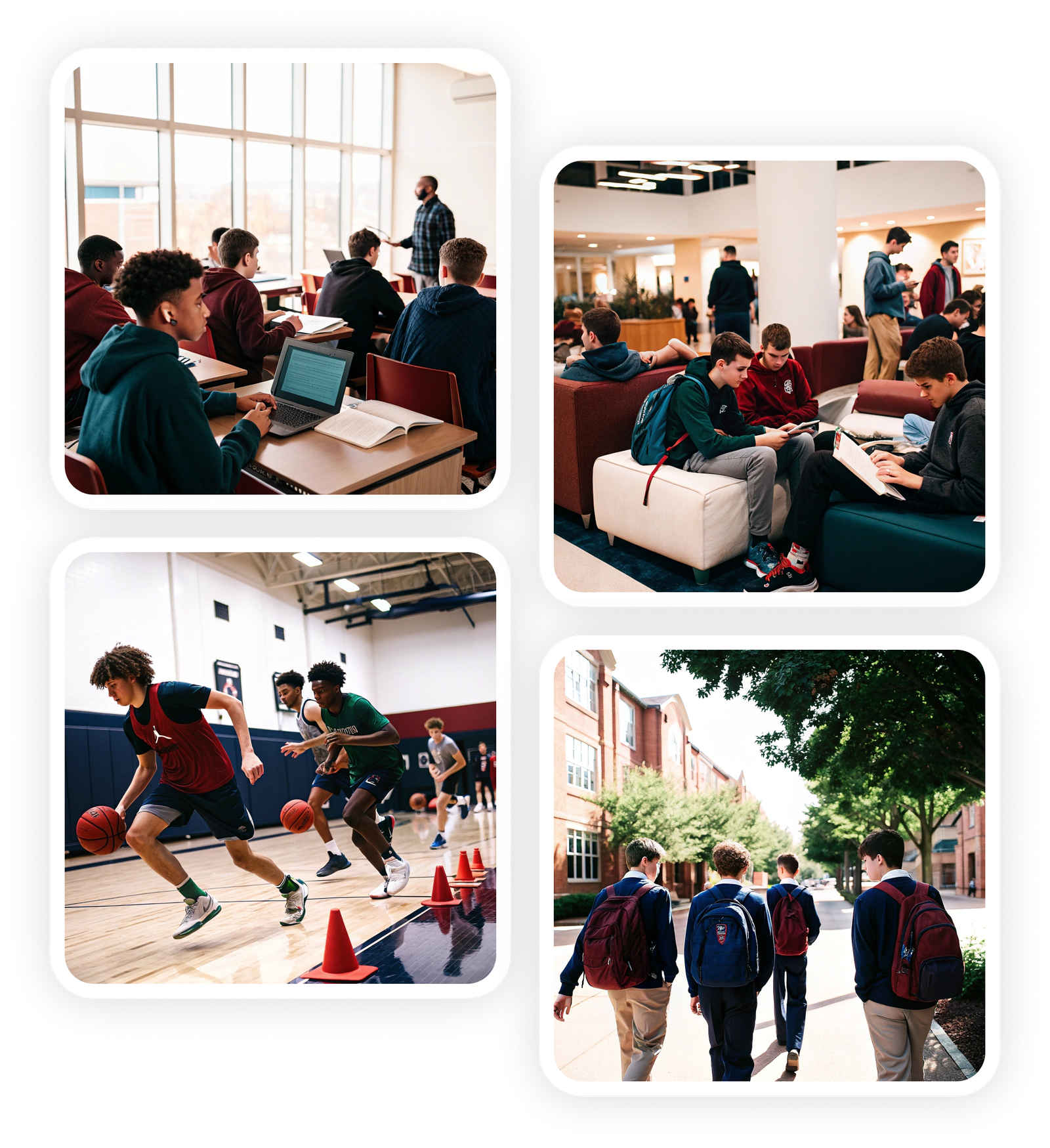 College‑prep academics + elite national basketball. Grades 9–12 & Post‑Grad.